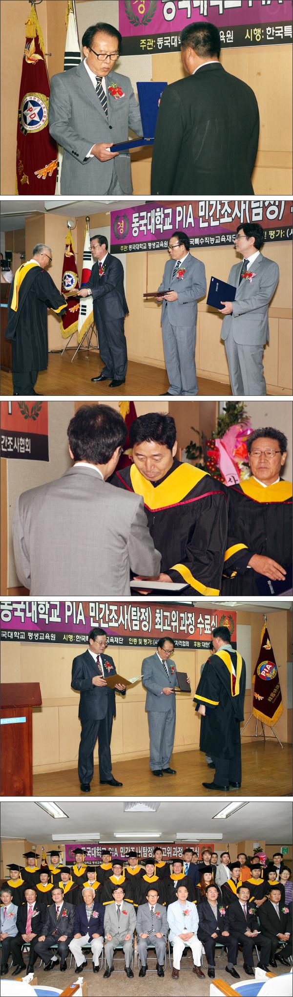 2013년 8월 31일(토) 오후 3시 동국대학교 덕암세미나실에서 PIA 민간조사(탐정) 제46기 최고위 전문가과정 수료식이 성황리에 개최되었습니다. 무사히 수료하신 수료생 여러분 축하드리고 멋진 미래를 기원합니다. 참석해주신 내외빈 여러분께도 심심한 감사의 말씀을 올립니다.