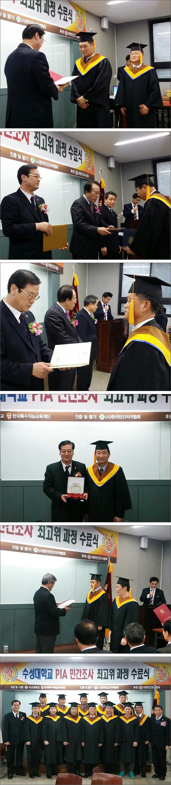 2014년 12월 19일(금) 오후 4시 수성대학교 성요셉관에서 PIA 민간조사(탐정) 제52기 최고위 전문가과정 수료식이 성황리에 개최되었습니다. 무사히 수료하신 수료생 여러분 축하드리고 멋진 미래를 기원합니다. 먼길 와주신 내외빈 여러분께도 심심한 감사의 말씀을 올립니다.