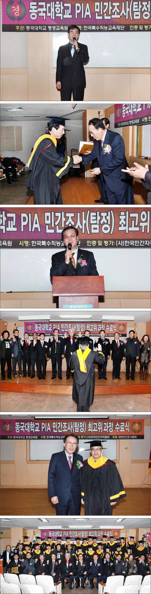 2015년 1월 30일(금) 오후 4시 동국대학교 덕암세미나실에서 PIA 민간조사(탐정) 제53기 최고위 전문가과정 수료식이 성황리에 개최되었습니다. 무사히 수료하신 수료생 여러분 축하드리고 멋진 미래를 기원합니다. 참석해주신 내외빈 여러분께도 심심한 감사의 말씀을 올립니다.