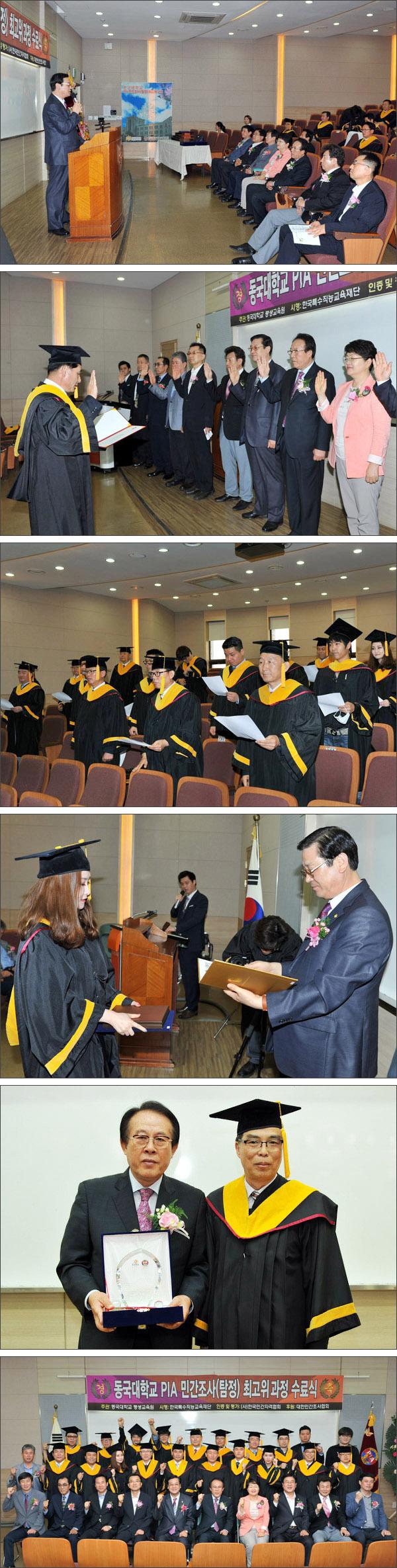 2015년 6월 5일(금) 오후 4시 동국대학교 학명세미나실에서 PIA 민간조사(탐정) 제54기 최고위 전문가과정 수료식이 성황리에 개최되었습니다. 무사히 수료하신 수료생 여러분 축하드리고 멋진 미래를 기원합니다. 참석해주신 내외빈 여러분께도 심심한 감사의 말씀을 올립니다.