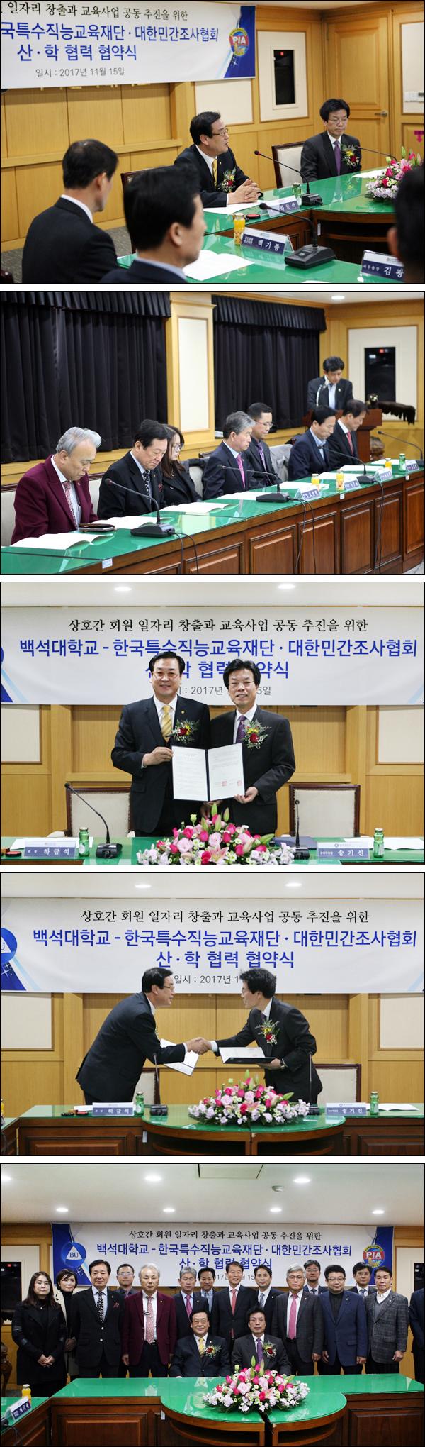 본 협회 하금석 회장과 백석대학교 송기신 부총장은 2017년 11월 15일 충북 천안의 백석대학교에서 탐정(민간조사) 최고위과정, PIA 민간조사 자격취득 전문화 교육에 관한 업무제휴 협약식을 거행하였습니다.