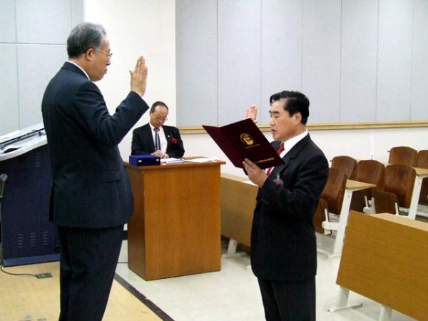 6월 30일 광운대 한울관에서 열린 사설정보관리사 14기 수료식에 부창민대표가 정학균회장에게 PIA 윤리 강령을 선서하고 있다. |