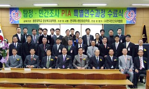 지난 2007년 10월 20일 PIA 16기 광운대학교 대학원 특별과정 약 3개월에 걸처 8주간의 이론 및 실기교육을 무사히 마치고 PIA16기 특별과정 수료식 기념촬영을 하였다. 이날 김영일 의장님을 비롯하여 많은 내 외빈 및 그동안 교육을 담당하신 당 학회 지도 교수님들이 참석하시여 자리를 빛내 주었습니다.