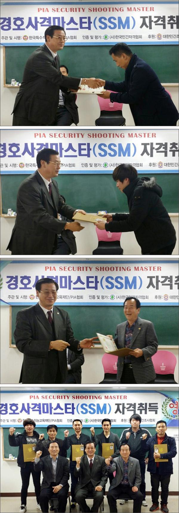 경호사격마스타(SSM) 자격을 취득하신 여러분들께 다시 한번 축하의 말씀을 올리며 앞으로 뜻하신 일에 무궁한 발전 있으시길 기원합니다.