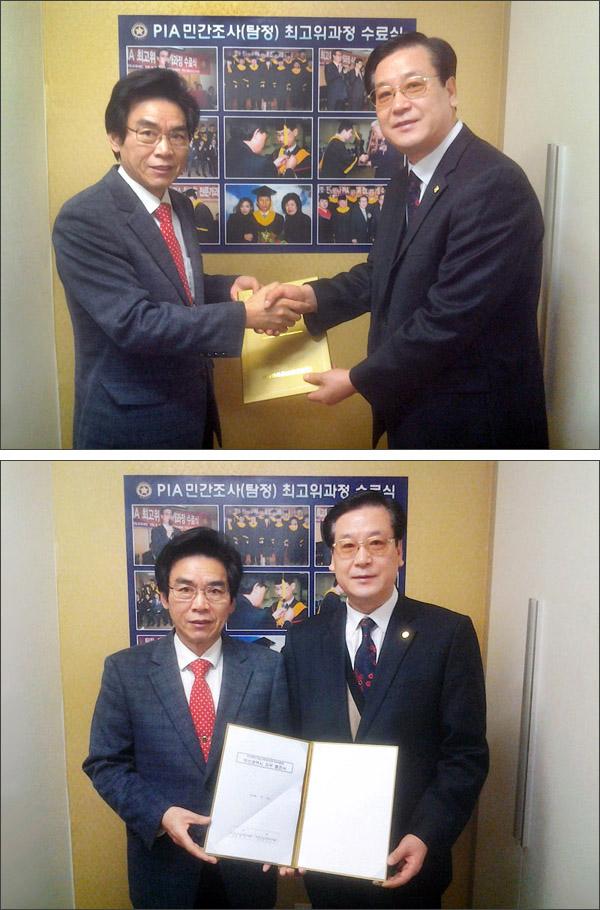 2015년 1월 24일 한국의 민간조사 교육사업 확장의 일환으로 동의대학교와 PIA 최고위과정 산학업무 협약이 본 협회 회의실에서 열렸습니다.