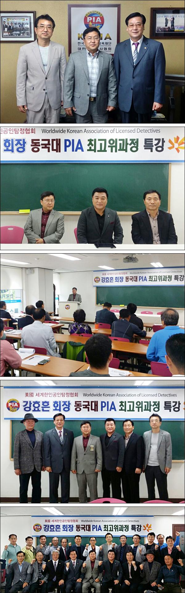 미국 세계한인탐정협회 회장인 강효흔 미국탐정이 지난 10월 20일 본 협회를 방문해주셨고, 10월 24일에는 본 협회 교육장에서 PIA 최고위과정 56기 교육생들을 상대로 초청특강을 펼쳤습니다. |