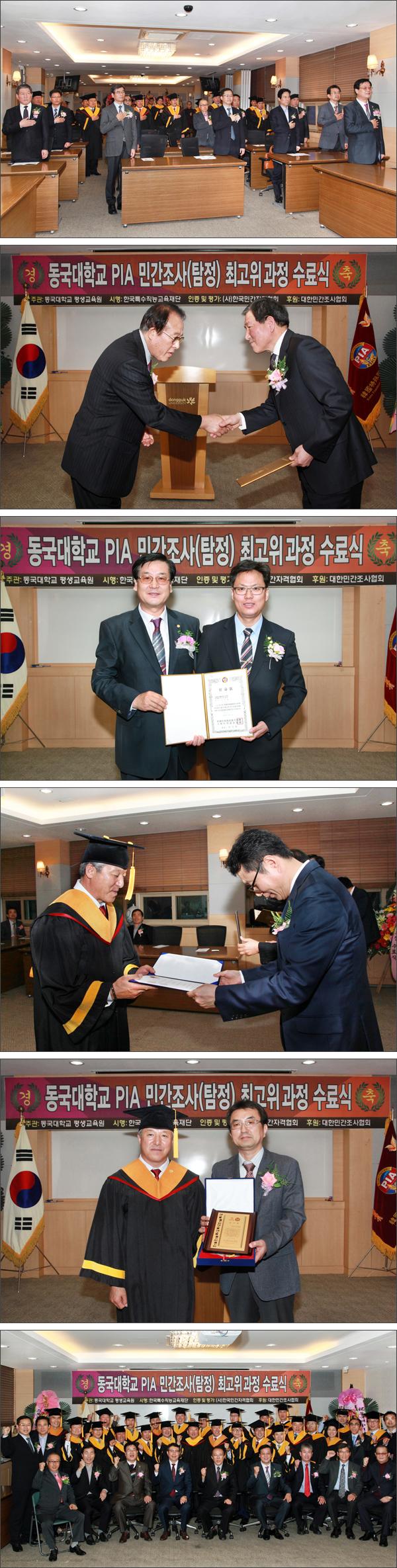 2015년 11월 6일(금요일) 서울 동국대학교 본관 로터스홀에서 관련기관 단체장은 물론, 정·재계, 학계, 지도교수 등이 참석한 가운데 동국대학교 PIA 민간조사(탐정) 제56기 최고위과정 수료식이 거행되었습니다.